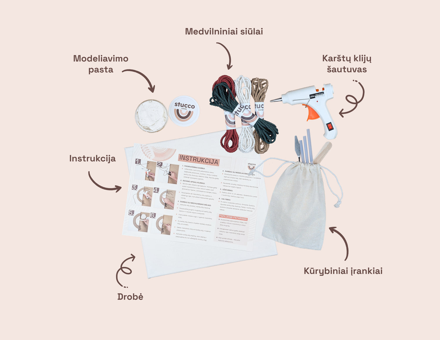 Šis DIY rinkinys suteikia galimybę kurti unikalias kompozicijas su spalvingais medvilniniais siūlais. Klijuokite, formuokite ir eksperimentuokite, derindami raštus ir tekstūrinį tinką gylio bei reljefo efektui. Visi įrankiai jūsų rankose – atraskite siūlų kūrybiškumą!